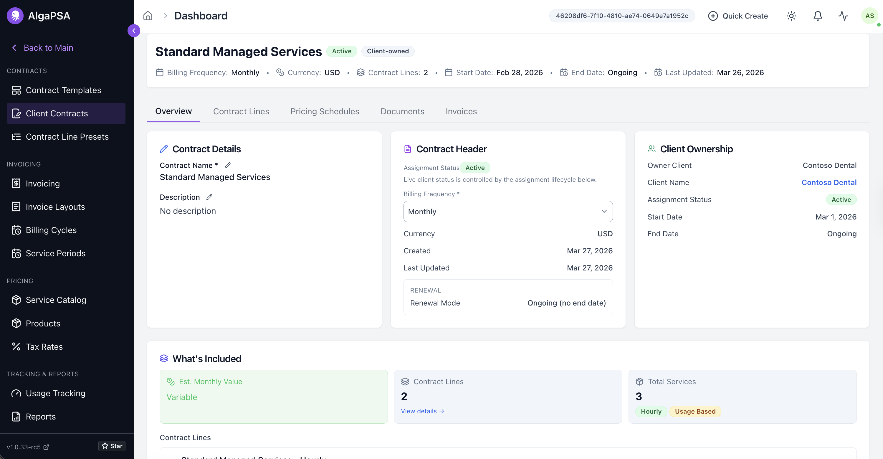 Month-end billing tends to be a mess. Data is scattered, invoices are inconsistent, and rates vary by client. Alga PSA offers contracts and invoice templates, usage insights, fixed-fee layouts, and accounting sync with QuickBooks and Xero so you can have clean, correct invoices without manual input.